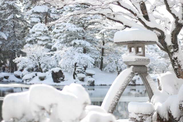 冬の庭は雪景色や霜の美しさを楽しむことができます。枯れた木々や葉の落ちた植物は、逆にそのシルエットや形を際立たせ、独特の美しさを醸し出します。また、雪が積もることで庭全体が一つのキャンバスのようになり、特に陽の光を浴びるときのキラキラとした輝きは格別です。